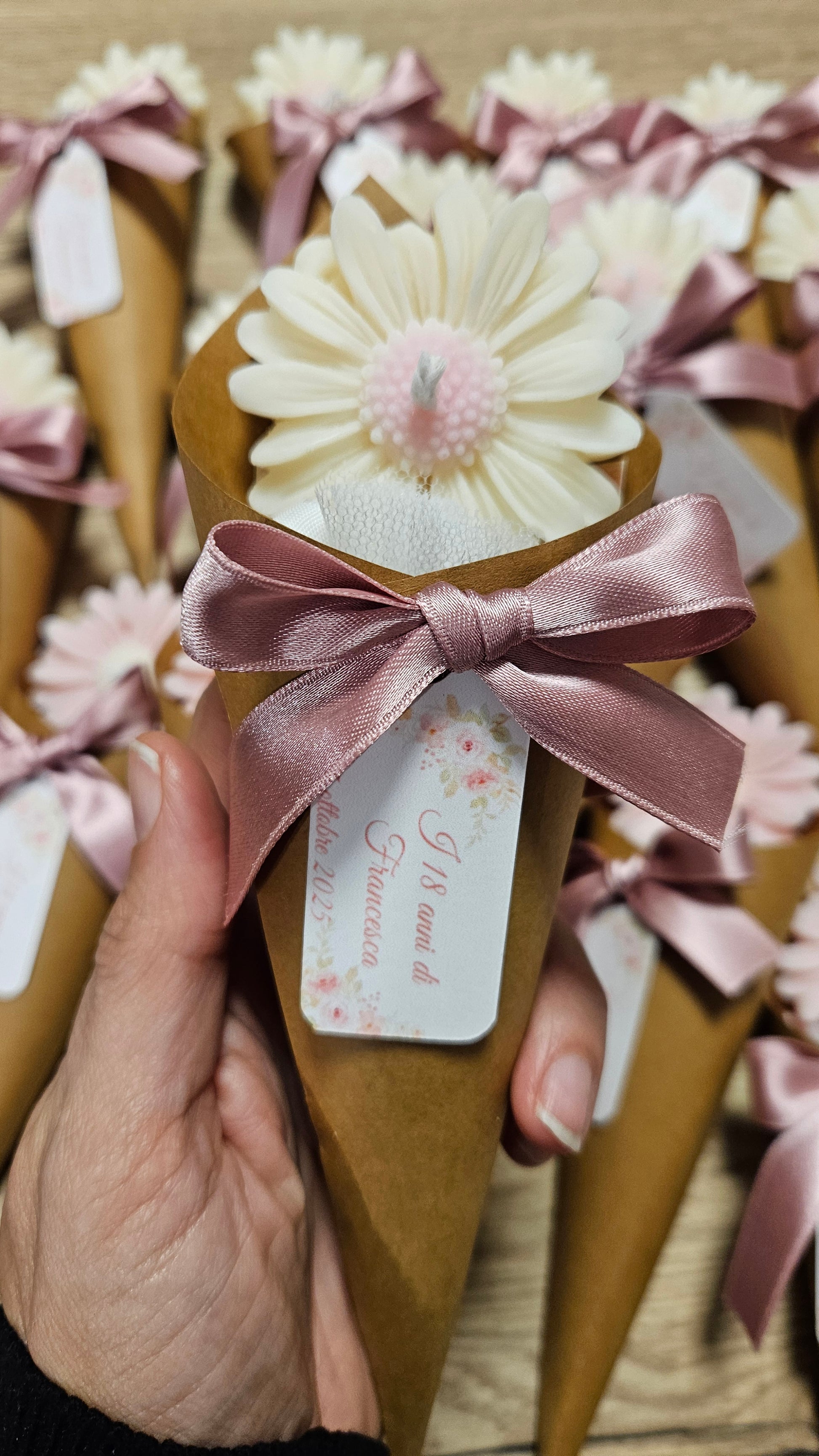 I fiori artigianali sono pensati per diventare una bomboniera delicata, elegante e ricca di significato.